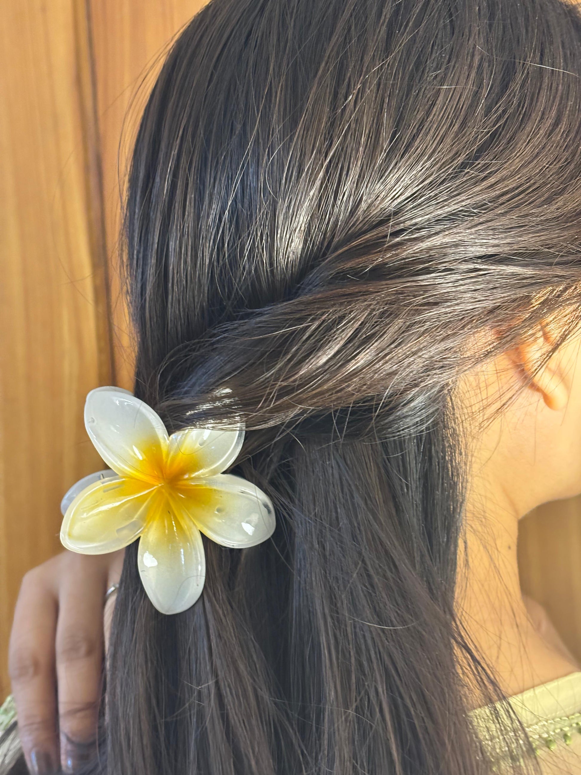 - White-yellow translucent flower hair clip β Dual-tone floral hair accessory with a subtle gradient effect.